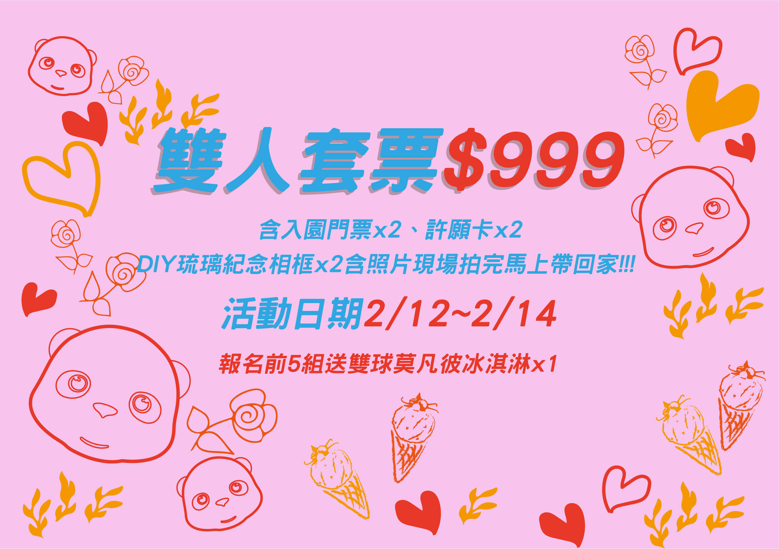 999元(含入園門票×2、許願卡×2、DIY琉璃相框×2,不含折抵幣)